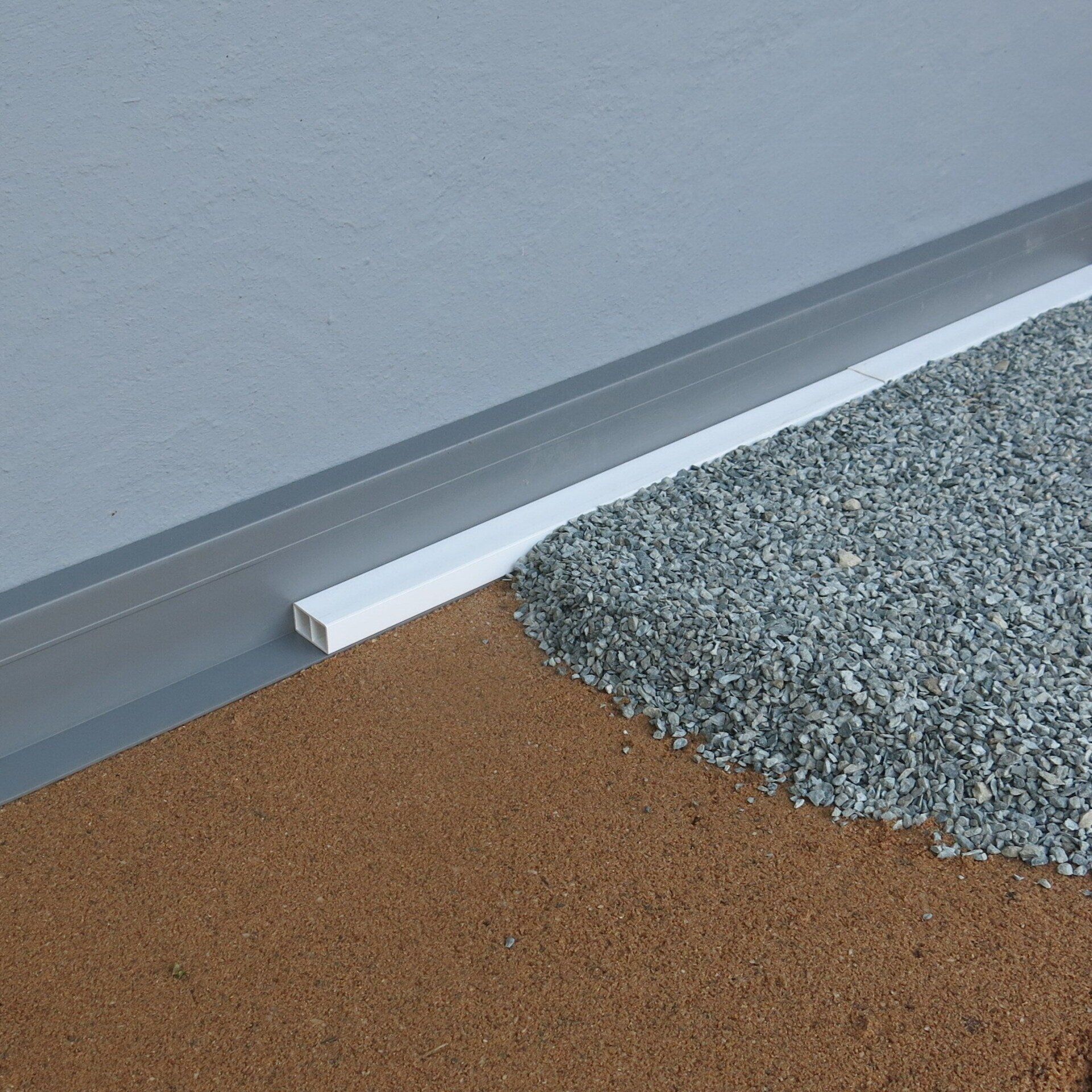 Erstellen Sie einen sauberen Pflasterrandanschluss indem Sie die Betonpflastersteine einfach entlang am Anschlussprofil verlegen. Mittels eines einfachen Kopplungsstückes verbinden Sie weitere Profile miteinander so dass Sie entlang der Fassade und Sockel stets einen höhengleichen Pflasterrandanschluss haben. Auch bei Setzungen, die mit der Zeit im Pflaster auftreten können, bleibt der Pflasterrand immer auf gleicher Höhe und bildet zuverlässig immer eine schöne Kante aus.